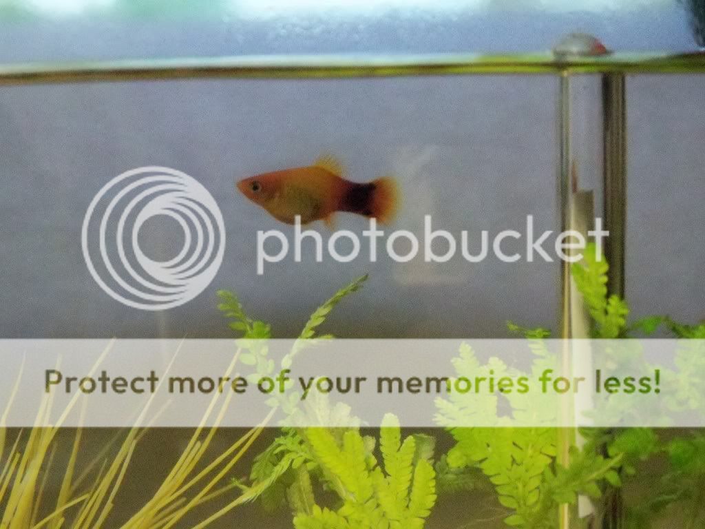So my roommate and I set up a 10 gallon tank last month (I know it's small but its the largest we're allowed to have in our living agreements) and now have a platy and two guppies, along with a snail. I noticed over the past week that my platy was pooping a lot and gaining a little weight. I bought a "male" platy but after a little research I discovered I was given a female from Petsmart. I can't see a very distinct gravid spot, but based on the angle her side does definitely get darker. If it really was a female in a male tank then it sounds like she definitely would be- can anyone verify this for me and maybe tell me how far along she looks if she really is pregnant?