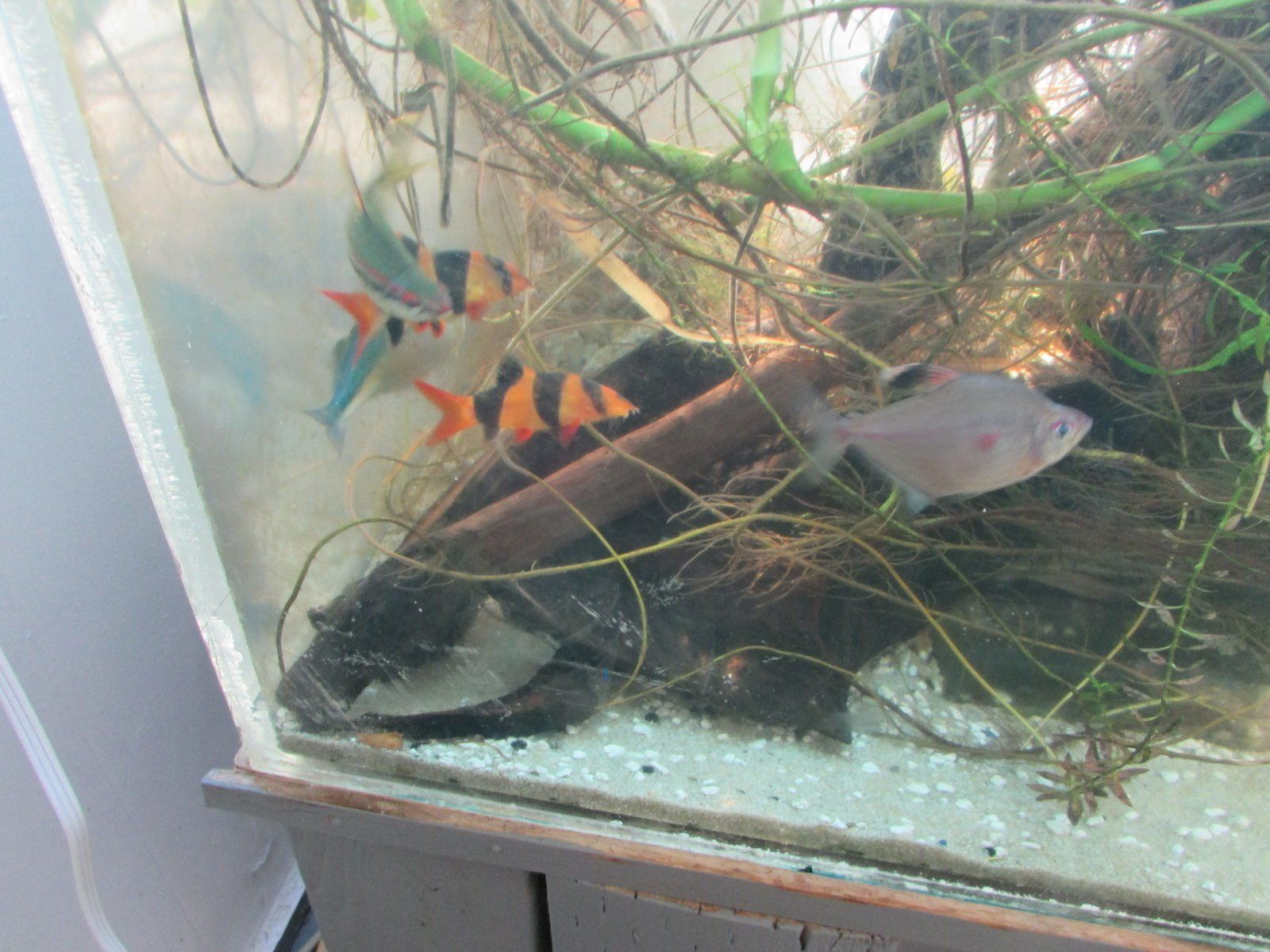 I've thought of trying this for awhile. I took a 30 watt shop light that was bright and grew plants well..but was yellow white..not much fish color. I was going to order a regular LED..then the news on slow mail truly becoming snail mail. So I took some watercolor paint,light blue,thinned it a bit and painted the old shop light now languishing in the tool shed unused , clear covers light blue. I plugged it in..and voila!..its better. Not as bright of course..but I just wanted it to light the left half with the roots.