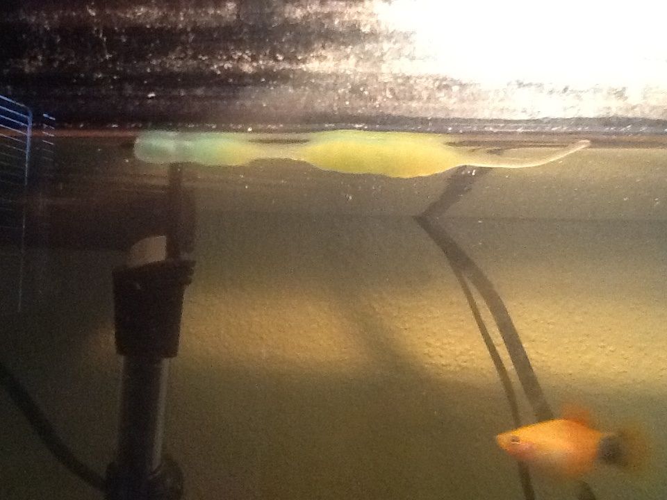 Okay a few days or weeks ago I asked if my platy fish was pregnant. Well turns outshe was now theres this weird floaty thing in my tank and I dont know what it is it kinda looks like an eggsack thing I dont know just help me please!