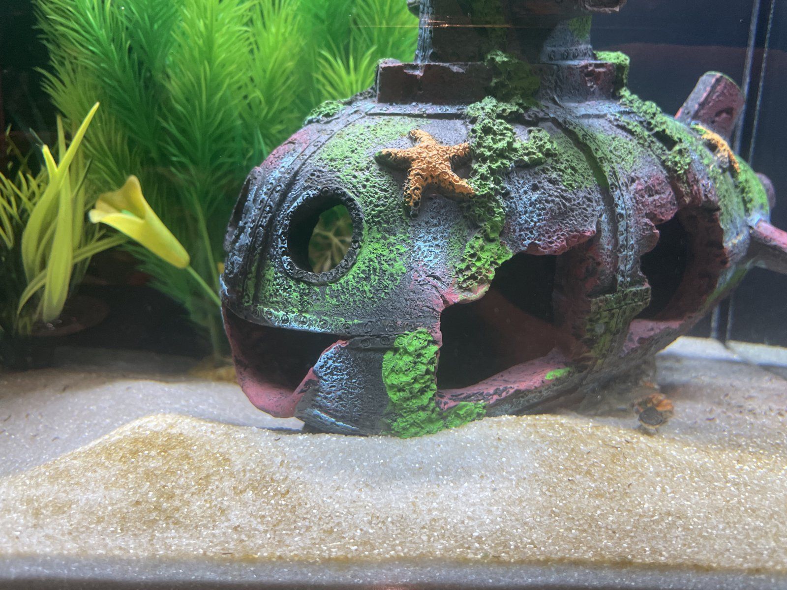 Are you using or did you use 2 different types of white sand? I did & saw something similar to what’s here. I think that’s green algae mixed with the sand. I vacuum it out & wipe down tank interior with a white magic eraser sponge. I also remove & rinse off decorations periodically. Yours look clean, but mine had green algae on them.View attachment 148867
