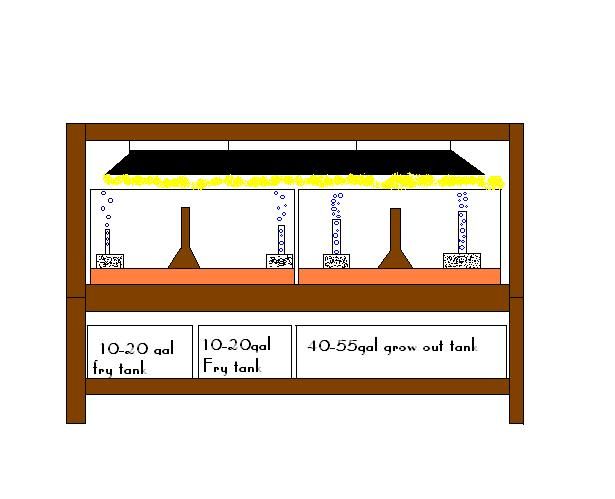 and 5 tank 60 gallon for the raise from 1 inch till size measure 3 inch to every batch (100-250juve).afterwards we split them by 3 division: candidate for mains and contest,export quality and ordinary ones.