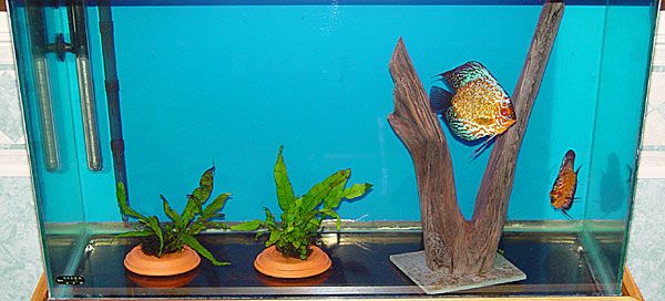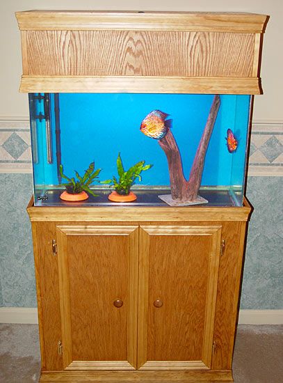 Some time ago I posted pictures of the stand I built for my 29 gallon tank that I was going to use for my breeding pair of discus. Well last night they finally got the move to there new tank.