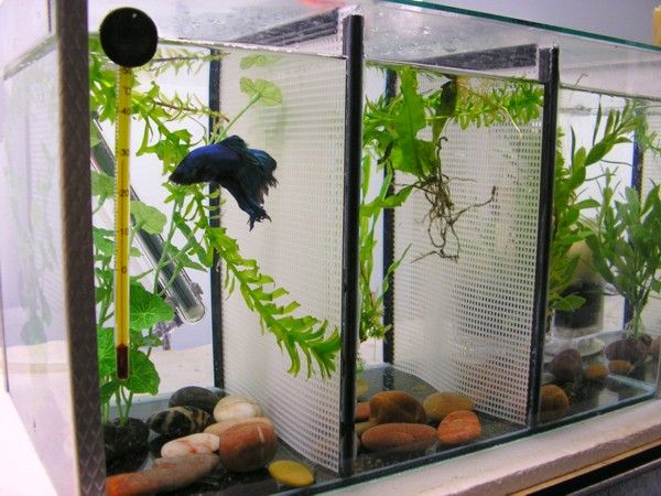 What are some ideas for dividing off a large betta-only tank? My tank is 2.5x1x1.2ft (LxWxD). Acrylic screens are really hard to find/expensive here... I bought some plastic canvas today but not sure how to secure it to the tank itself.