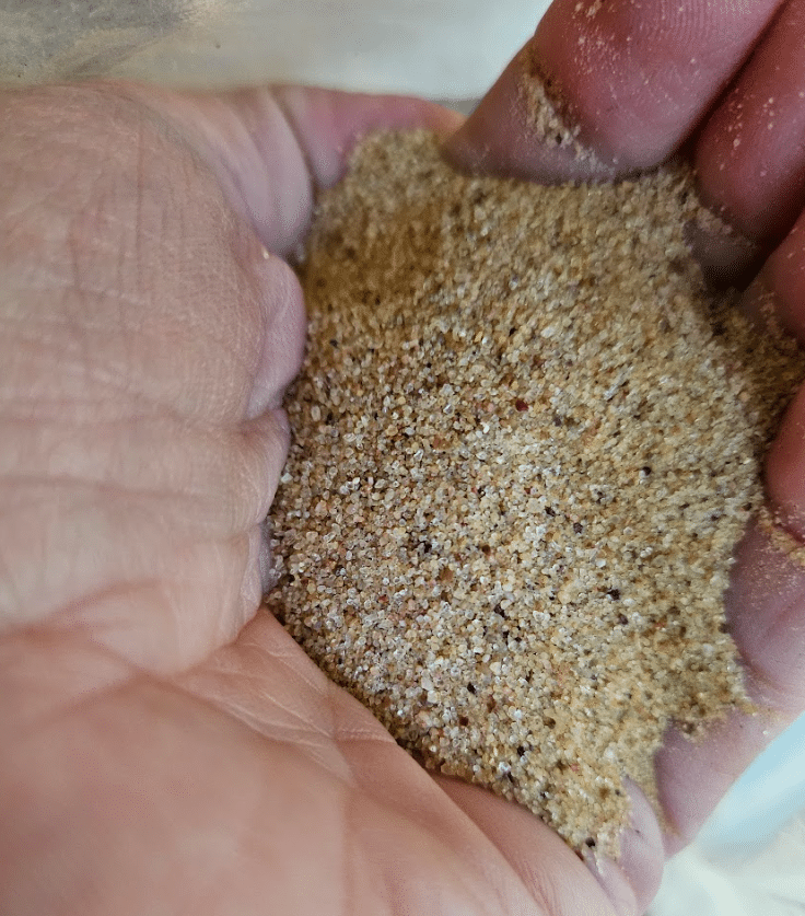 This is what I've used with success in the past. CaribSea Super Naturals natural sand color (sunset gold possibly). Notice how small the grains of sand are compared to the lines in my hands. You will also see that the grains are small and rounded, which is good for critters that like to stay on the bottom and/or root through the sand.