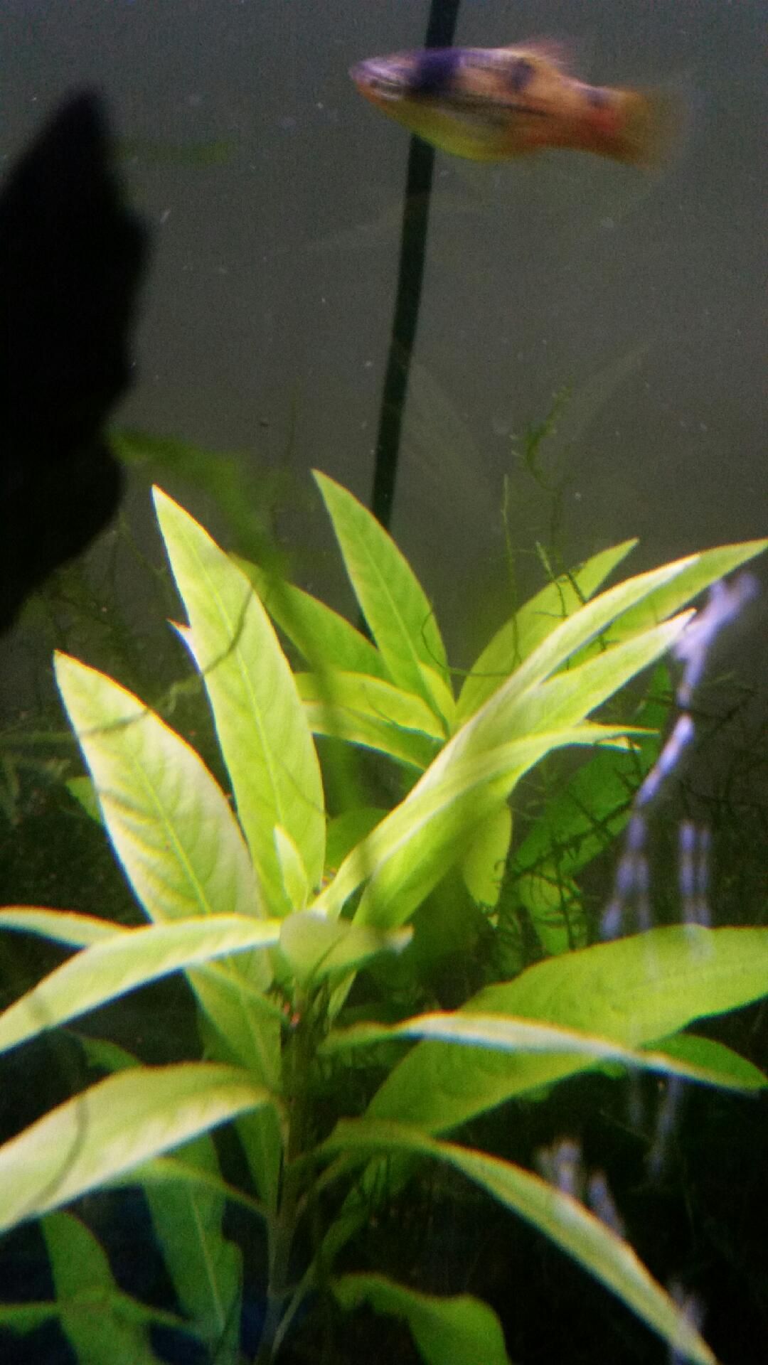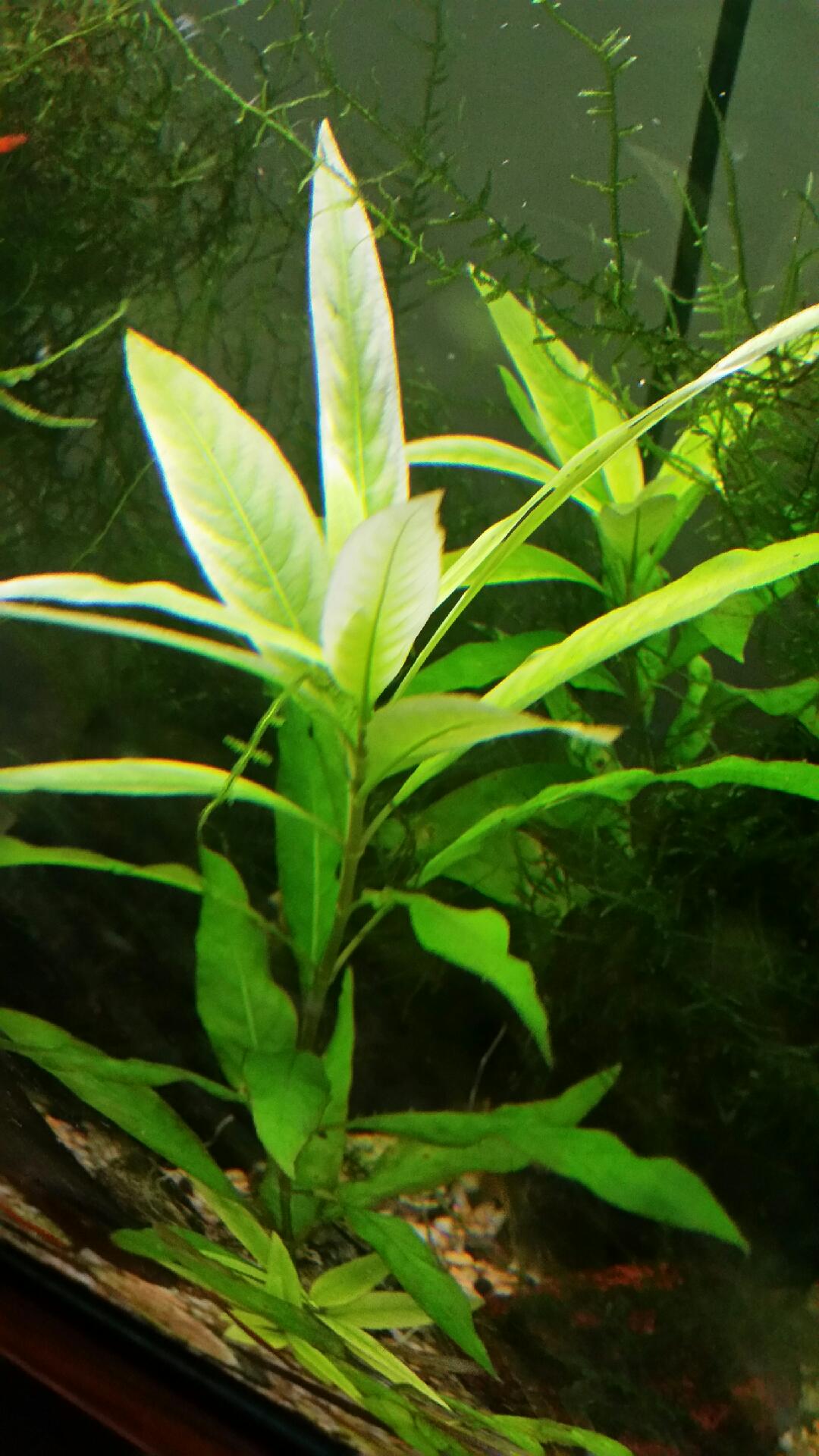 During regular maintenance, I have removed a couple of the plants (roots and all) and put them into my 200l (which I got second hand and I think the lighting is a domestic fluorescent light that just rests on the top of the tank). Despite growing new roots and new leaves, the poor things are not looking so hot: