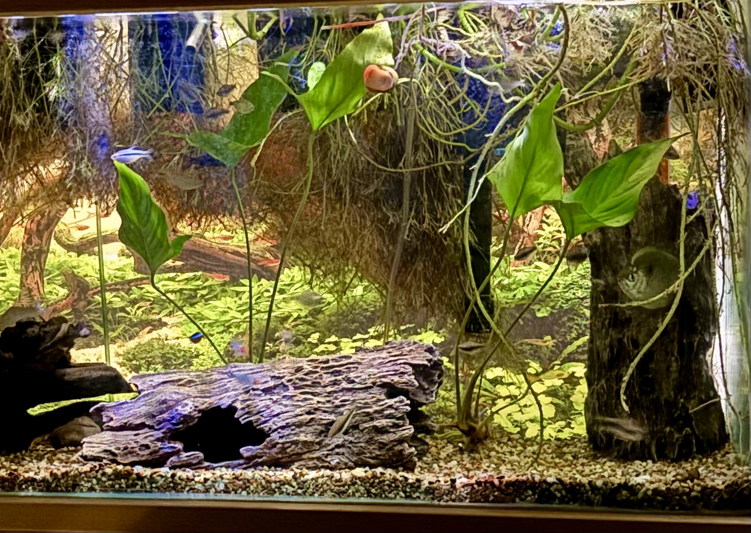 I only added one to this tank, as it seems like one of my most challenging tanks for a bigger snail, I wanted to be able to keep an eye on it... it's been here for several weeks...