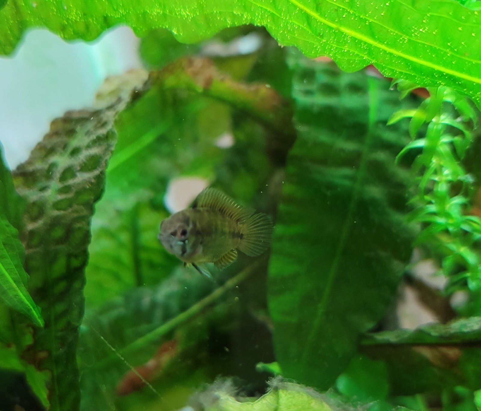 the blue one is a male there is no doubt about that; the females are smaller and look a bit different than the males. Here is a picture of one of my female borelli:I think you are right and it is a Apistogramma cacatuoides cockatoo. She is certainly a lot larger than the new blue one. If the blue one turns out to be female, I will ask to exchange as I'd prefer a male.. My old pair were from the same tank and so I would guess they were both cockatoo. At the time of getting the new male, he was in with some cockatoo I believe.