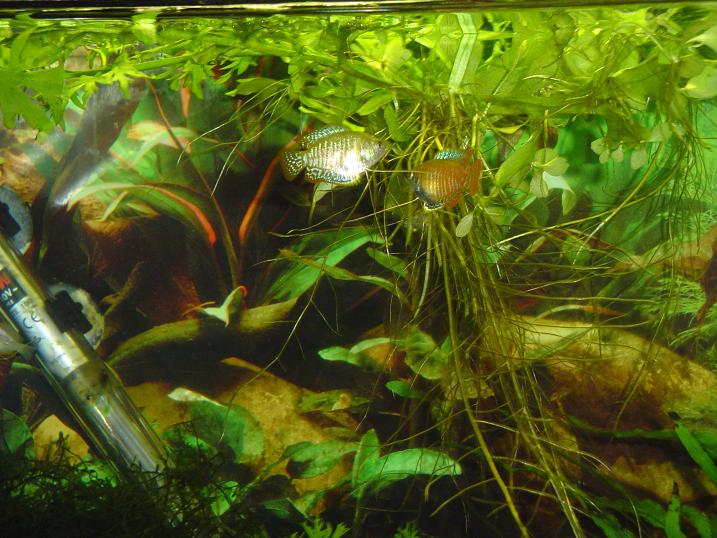 I was trimming my amozon swords and thinning out my floating plants from my bigger tank and put some of the floating plants in my smaller tank. My youg dwarfs love the stuff there fighting over who eats the most roots that the other.