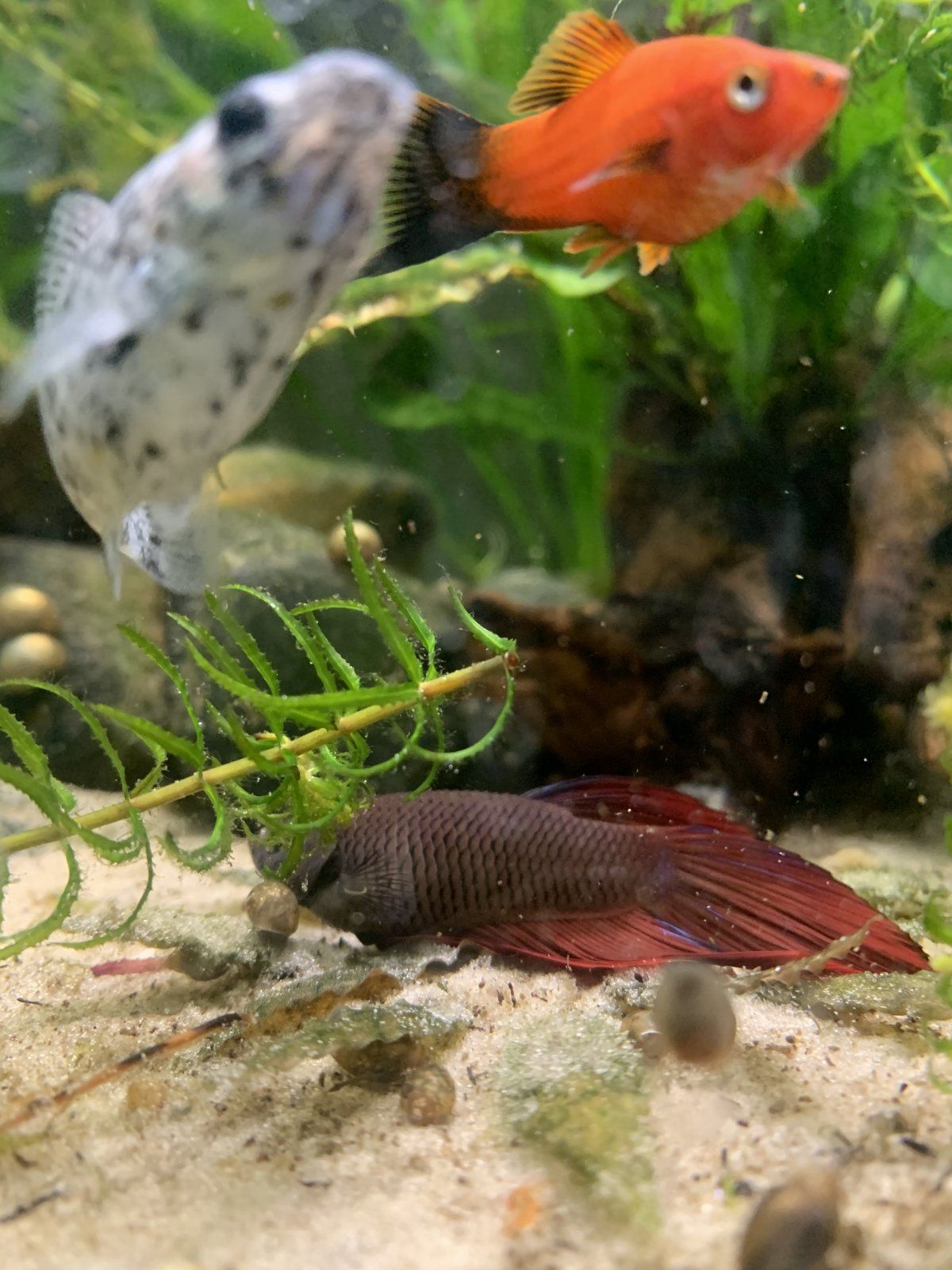 That may seem counter intuitive from a human perspective, thinking that a fish would like to have the biggest tank possible, but in my experience bettas do much better in small individual tanks.