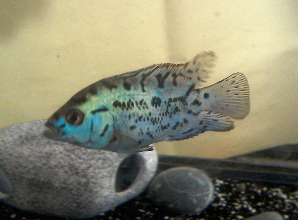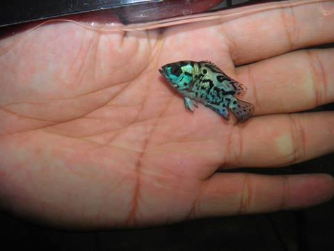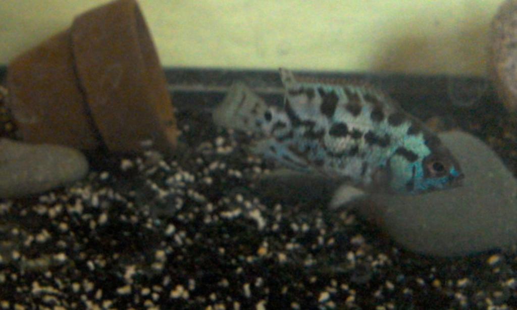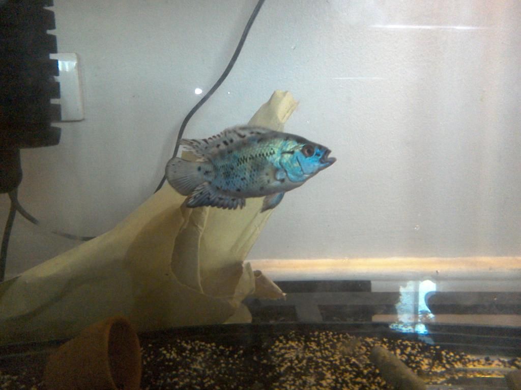 I purchased this fish in late March 2014, I saw one of the local importers put an ad up on facebook,I've always dreamed of owning one but could never find them in my country. Unfortunately it was a week before I could had the time to travel to his place and by the time I got to the stock there were only 3 left. He was advertising them as 2 inch fish, but the ones I saw were barely over half an inch! Knowing that these fish are extremely prone to dying when at that size, and the fish costing about $25, I was kinda hesitant to get one at first. The were housed with agasizzis and two were very reclusive although one was up and about the tank. Not a good sign at all! Still, I asked if they could be fed so I could see them eat. The one that was up and about was the first fish in the tank to the food. After some more thought, I decided to take this little guy home. He was about as long as a neon tetra.
