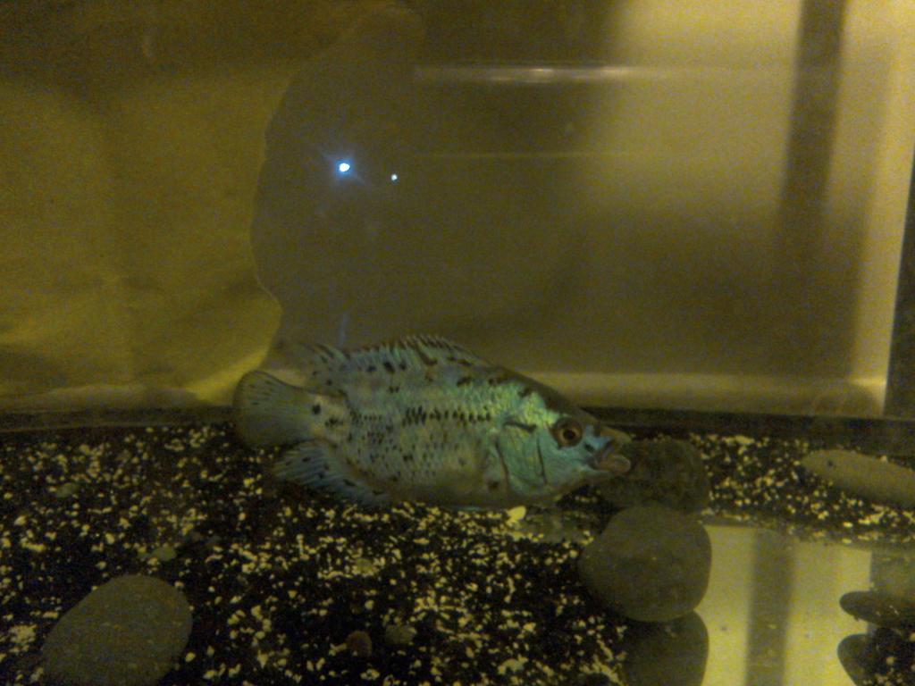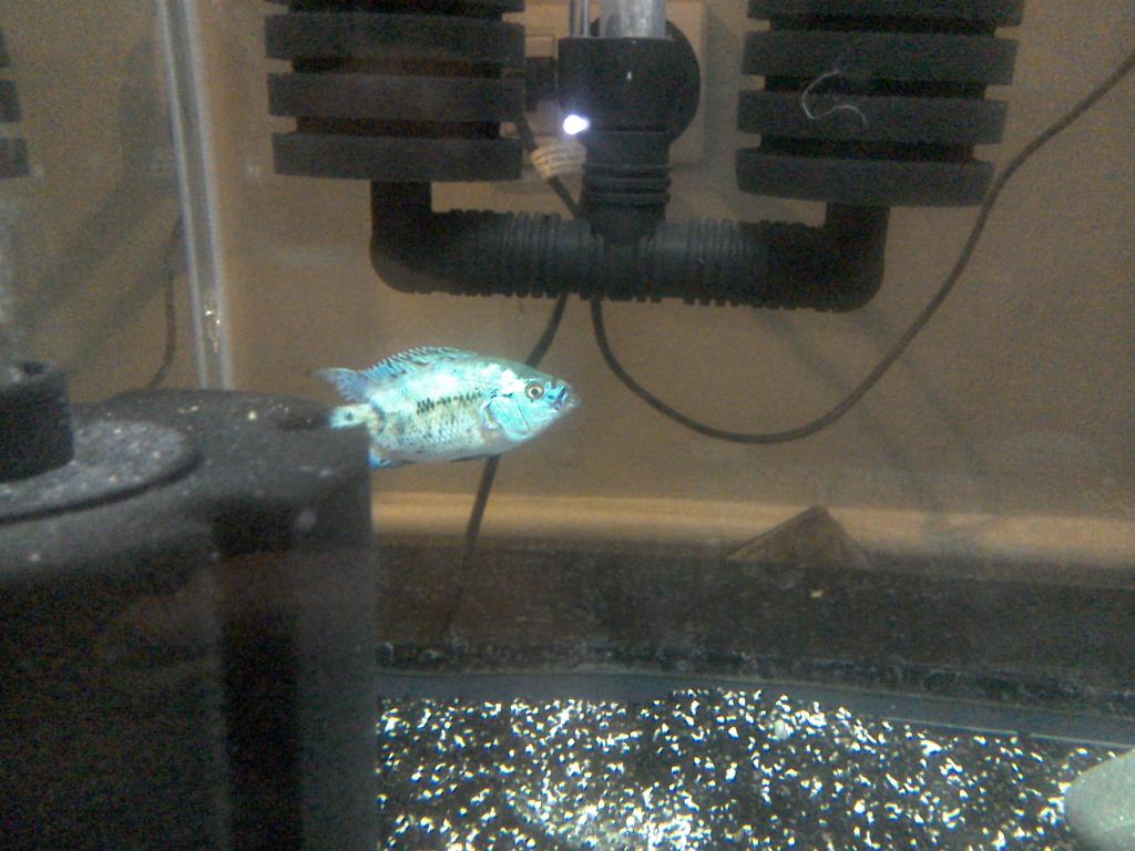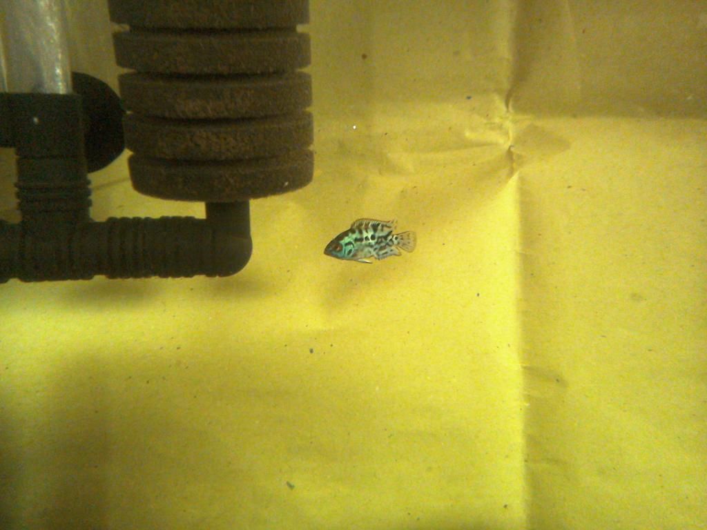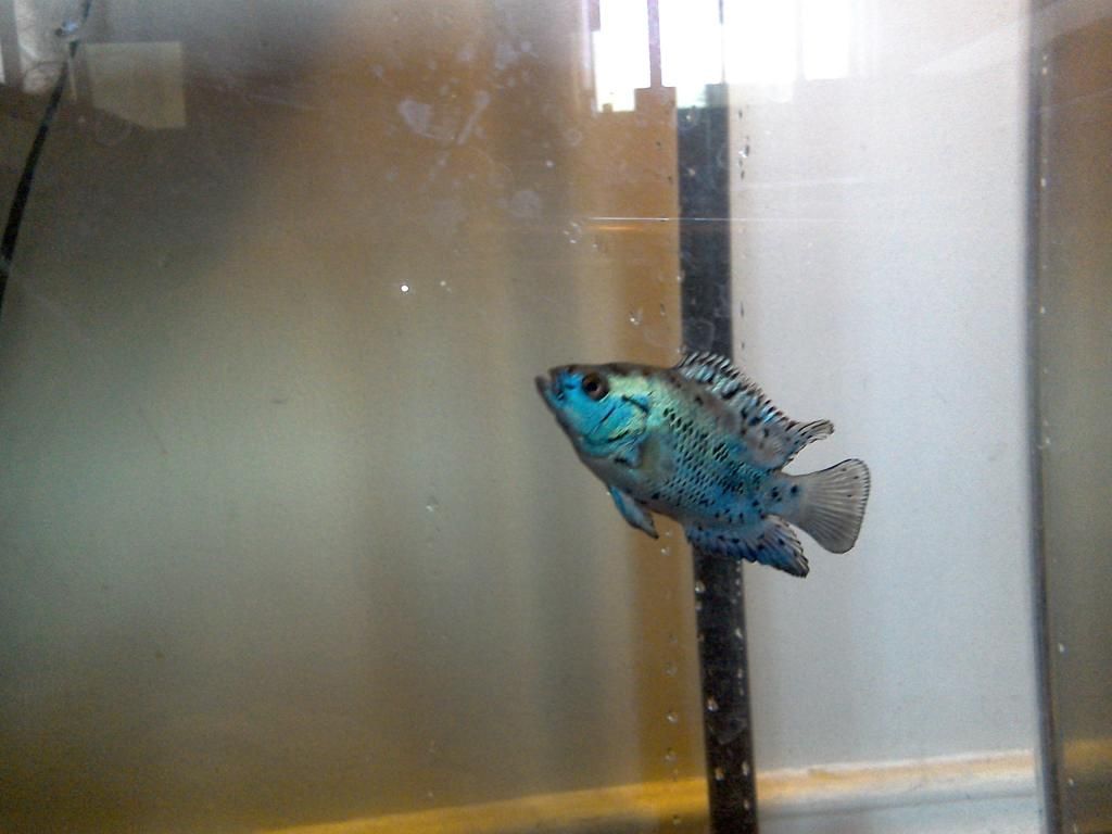 Here's a picture when I just got him. Looking back I must have been crazy to buy such a tiny fish for so much, but he's growing well and doing great now!