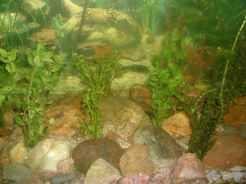 For those who tried helping me in the African Cichlid forum. Here's a pic of two of the 4 supposevly Electric Blue Cichlids that I bought. (This is the right side of the tank, where there isn't much light, I don't really do much with this side, because I'm trying to grow stuff on the other side.