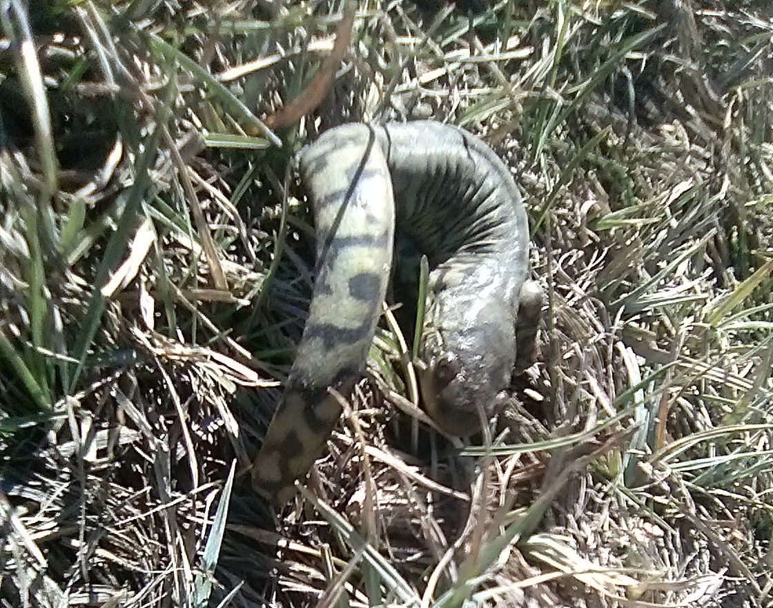 Sunday, I found a friend. This is a blotched tiger salamander, Wyoming's state amphibian and an extremely cool critter. They can live anywhere from swamps to sagebrush deserts. They spend the vast majority of their time underground. Out in the desert they usually only come above ground at night during rare rainstorms. I found this one in the middle of the day, blundering about trying to find its way down to a waterhole, which means it had either been disturbed in its burrow, or it was just extremely confused. I thought about bringing it home, as they make really cool pets, but I had no way to transport it that would keep it comfortable. So I gave it a boost down to the waterhole, which seemed to please it. As I walked away I could hear it glurping happily around in the pond.