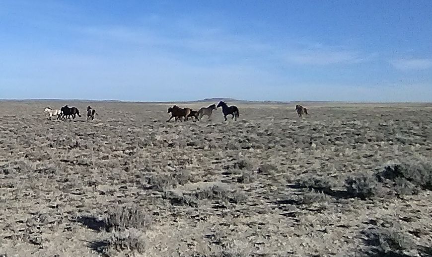 There are hundreds of wild horses out in the Red Desert. They are an invasive species, with no natural predators, and no one is allowed to cull them. This country can't grow much grass, with the lack of rain, so these herds of horses are very tough on the country. Each horse takes up the resources of a cow, a couple elk, or half a dozen antelope, and there are way too many of them. Still...they are rather magnificent beasts.