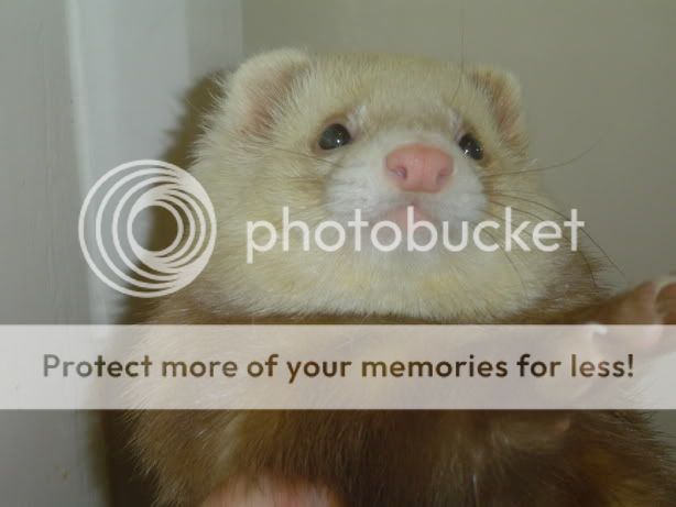 . I had the ferrets in the kitchen for playtime earlier today and thought I'd take some pictures. My personal favourite was one of Ben, who is a sandy hob and just under a year old. This means that he's gigantic and chubby because it's first winter... all ferrets tend to look more like badgers in size on their first winter. He's my biggest ferret and he weighs about 3kg I think. Total porker! Anyway, here is Ben sat upside-down on my lap like the chubby chap that he is...