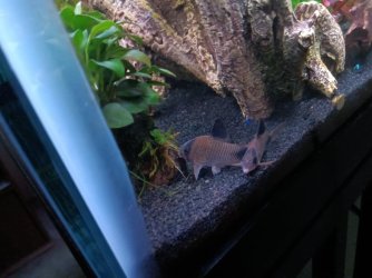 I had a stripe of black and blue gravel at first but suspected it was to rough so removed 90% of it and am using Imagitarium brand Black sand.The most common cause of this on cories is due to the substrate. The roughness is one aspect, but more often it is the bacteria that get down in the substrate. Is this substrate sand, because it looks too large for sand. Cories must be able to filter the sand through their gills, this keeps the substrate clean because the food does not get trapped as it does in gravel.