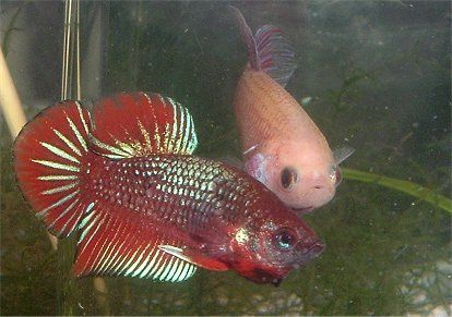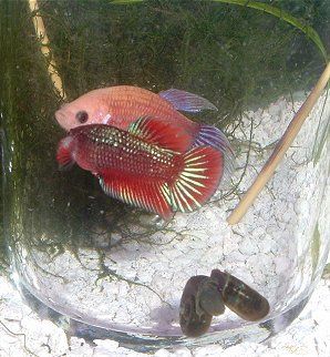I got Falsey, along with 9 or his siblings, two or three months ago, from Nashnut. He was my favorite of the group, for a few reasons that might make him less favorable to others - His fins would not grow out, and he would not flare. He's been a juvie all his life, even though all his brothers are big and mean by now. His size keeps growing, but he keeps his gentle disposition, and his fins never grow.