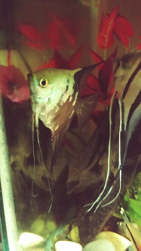 couple of pictures of , my ,babies...small fry. smallest angel of the original dirty dozen, quite the fighter though. Mr. Hyde is her man, they own a 40breeder. honey gourami, several rummy nose, a red cheeked tetra, and a black ghost fish....and a bushynose pleco...albino, long finn. (adorable ) Mr.Hyde, lovely long finns, SABU had lovely long finns, Perseus (a girl, but I liked the name). also going to throw in a picture of FanFare...