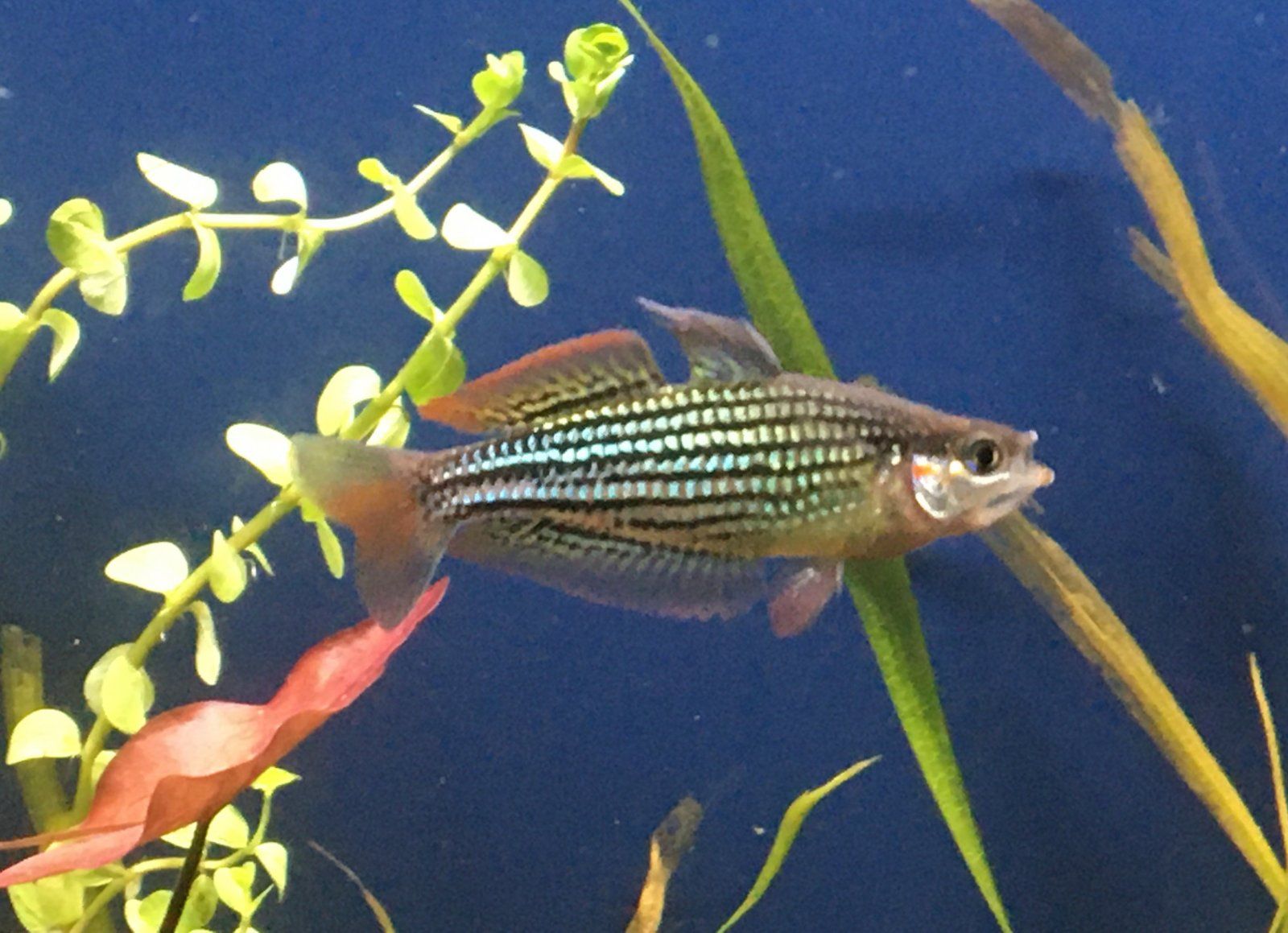 "smile!"Here is one of my dwarf rainbows (Melanotaenia Maccullochi "Stark River") posing for the camera.