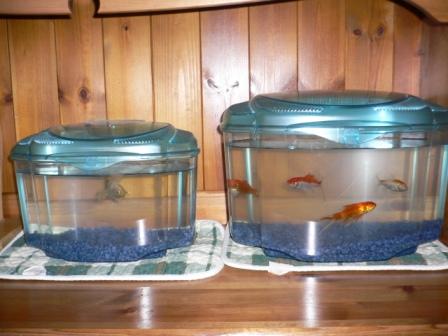 My neighbour Karen knocked on my door yesterday and asked me to look after 5 goldfish for her. She was actually looking after them for another neighbour (16 year old girl) who's gone on holiday. Karen has to go up to Scotland to her grandmother's funeral so because she know's I have 2 tropical tanks she asked me to temporarily 'fishsit' for the young girl until she gets back and is able to take over fishsitting again.
