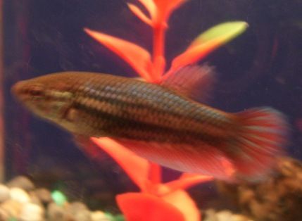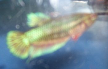 My son wanted a betta for Christmas. He had his heart set on a green one. We found this female at Petsmart. She was dull and shy in the tiny cup. We put her in a one gallon tank. She hid in the plants at first. NOW she swims around happily and rushes to see what we are doing when we are near her tank. I have no clue what kind she is or anything but her name is Dragonia. The pics just don't do her justice.