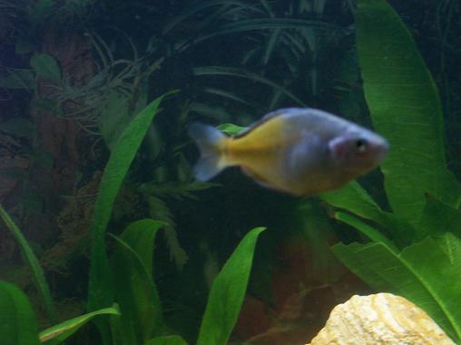 i have 2 plattie fry, there mother died giving birth to them, and a baby rainbow cichlid donated by mr jayjay kindly MHunt said: Nice tank and fish. What you got in the breeding net other than a couple of plants? Click to expand...
