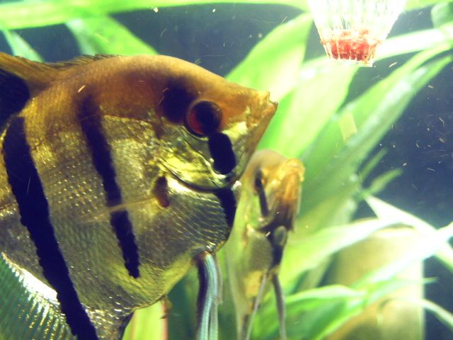 I have 4 tanks at the mo, heres a pic of my planted community, A Ram, A Cory from another tank, A Firemouth and my Angels having there lunch.