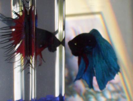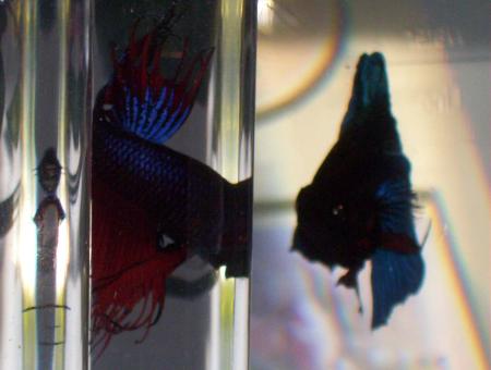 G G_Sharky Fish Herder Joined Jan 30, 2004 Messages 1,502 Reaction score 0 Location toronto Sep 1, 2004 #1 here's my 2 betta....BTW the blue betta past away almost 3 weeks ago so RIP...Blue.... Attachments warmupfight.jpg 20 KB · Views: 45