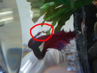 I am not sure if my betta is nipping his own tail or if he has a case of fin rot. I just noticed today that his dorsal fin is looking a bit shredded. There is also one piece of the fin hanging off but all the rest of his fins are fine.