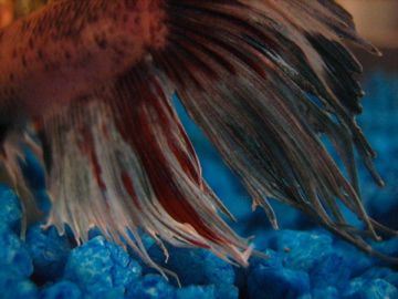 Today, I even got him frozen blood worms to eat instead of freeze-dried, but he didn't even notice. Then I noticed what I think might be fin-rot, on the darker part of his tail...
