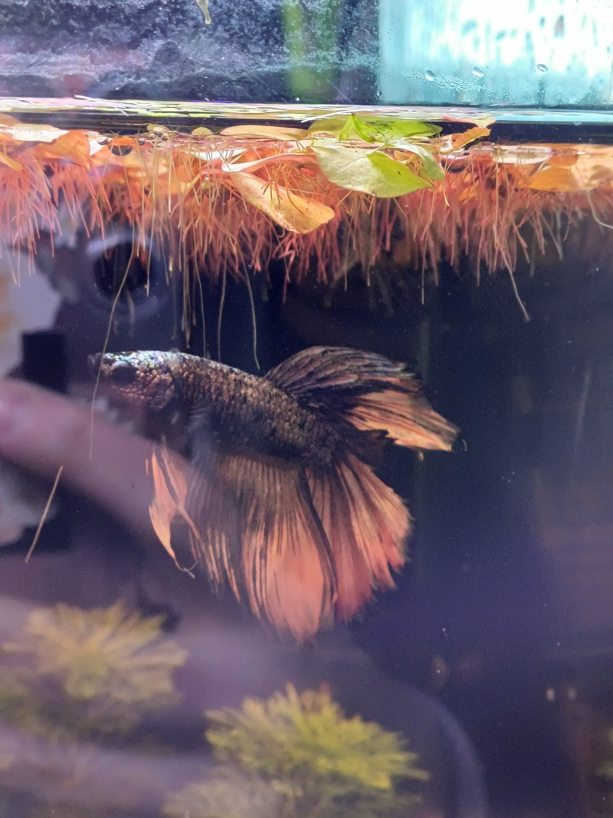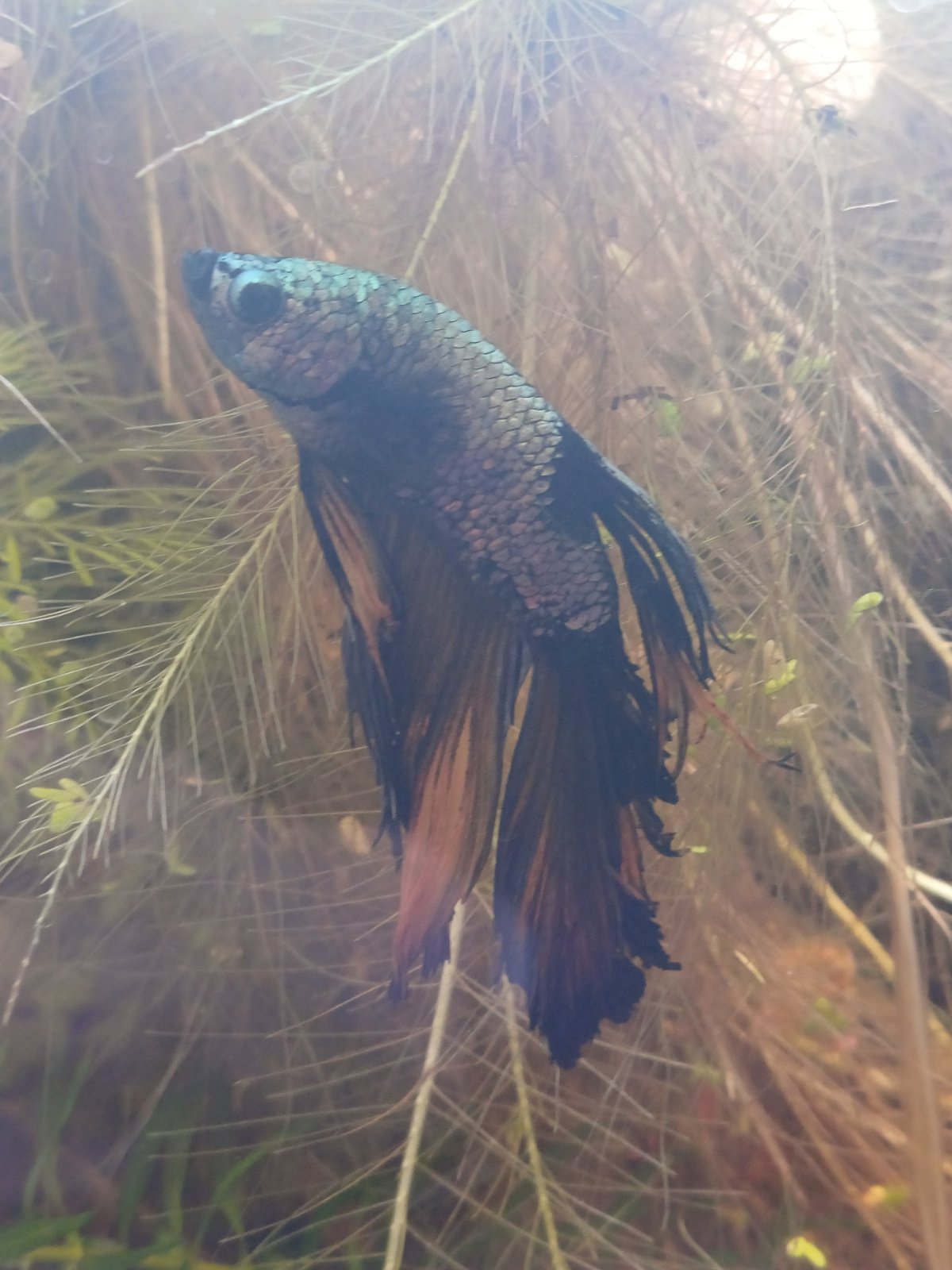 Picture 1 is from 22.09.25 not long after I got him. Picture 2 is from today. The area by his dorsal (I think) fin has lost its metallic colour and the dorsal fin itself looks scraggly. His tail fin has never fully grown in since I've had him, it's always been short on top.