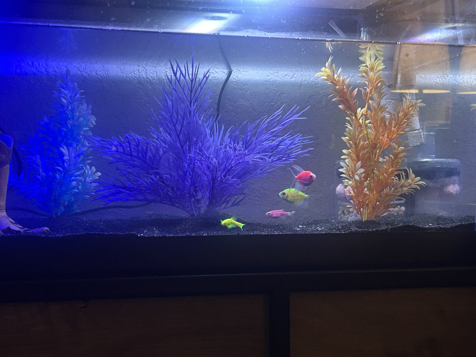 And the occupants are 1 black skirt glo tetra, 2 long finned black skirt glo tetras, & 2 glo zebra danios! (I know the glofish are not natural and are frowned upon but my 8 year old daughter wanted them so badly ) . I ordered online yesterday 3 additional danios to make a total of 5…. And I ordered 9 more long finned tetras (I couldn’t order less because the purchase needed to be a certain dollar amount minimum) so I’ll have a total of 12 tetras. Ideally I was wanting a total of 5 or 6 …