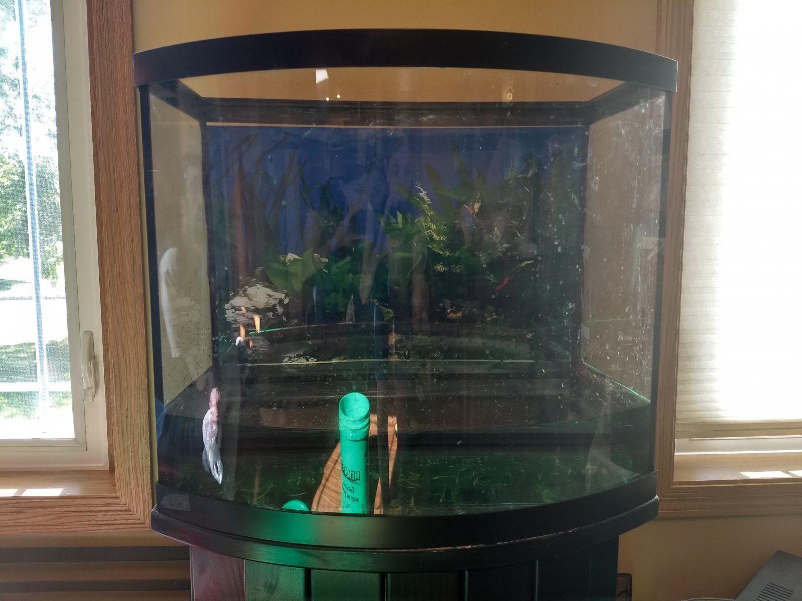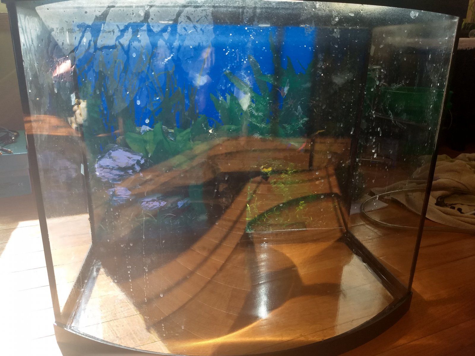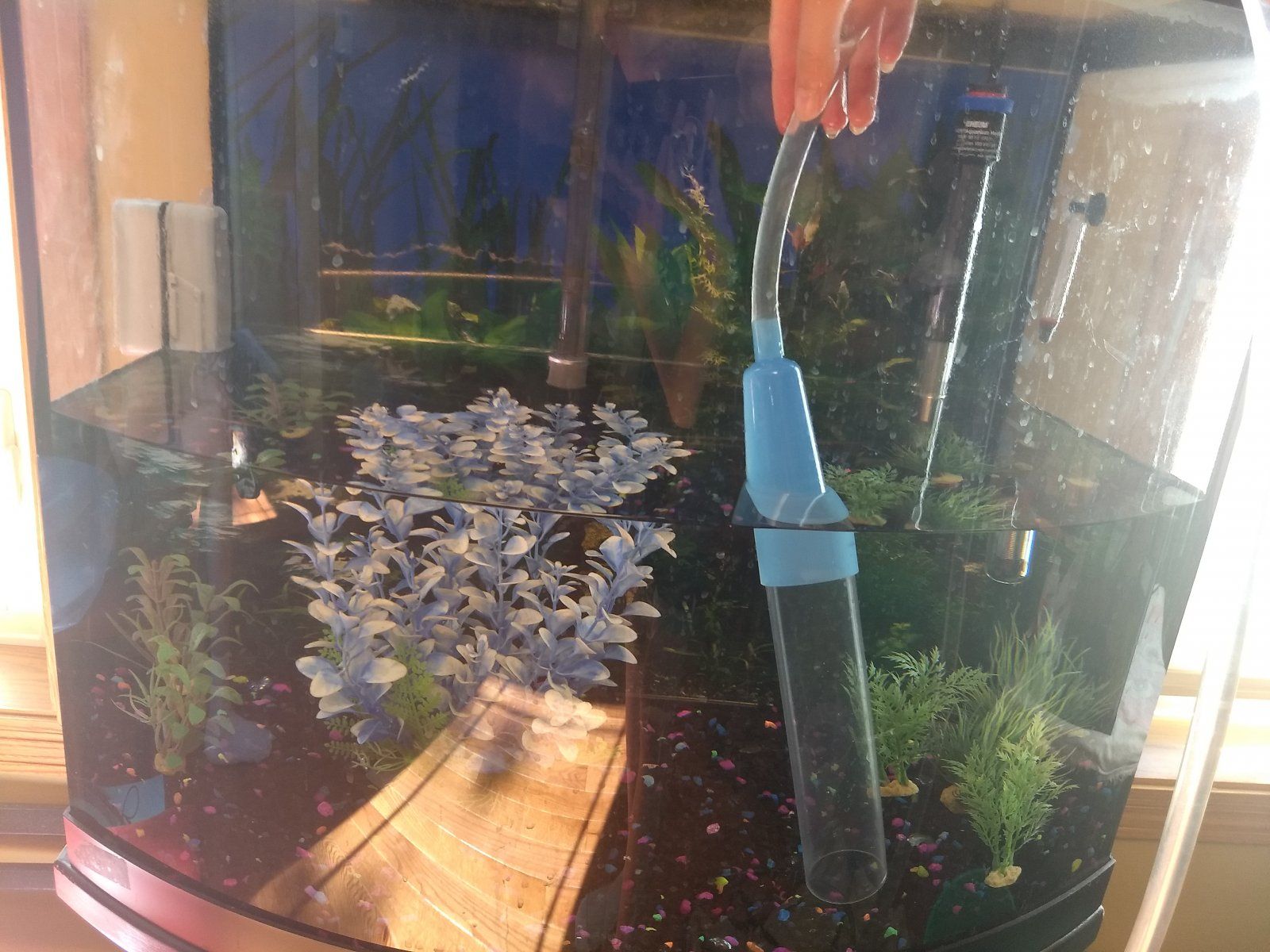 2.5 hours later and it’s done, at least for now! The process went smoother than expected. Got rid of all traces of the clown gravel, and removed the blue plant and the bucket decoration. I will replace the filter floss soon, but for now I’m more concerned about having the tank recycle as fast as possible.