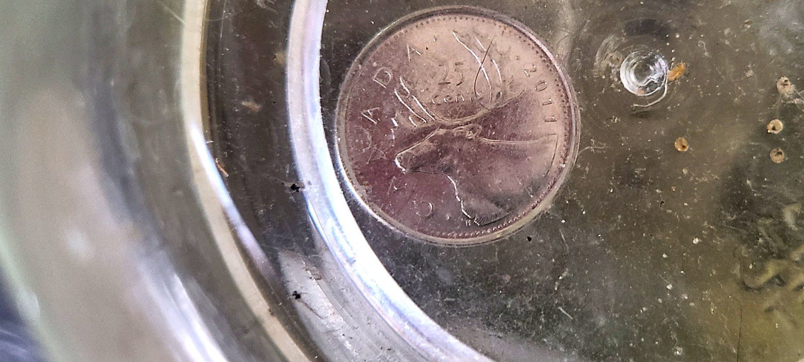 Canadian 25 cents are same size as an American quarter and UK's 10 Pence for reference