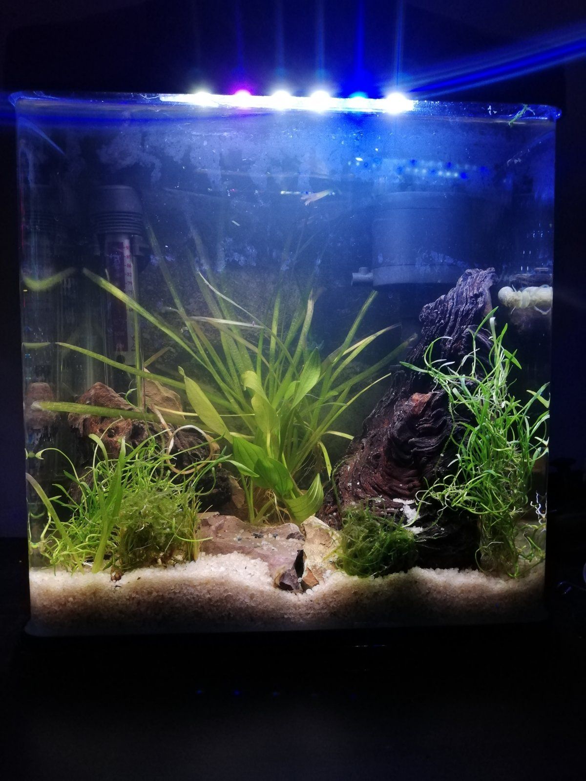 In the smaller tank I have a pond snail and a Malaysian trumpet snail I'm thinking about turning it into a shrimp tank eventually but for now I will use it as a quarentine for some more corys I have left a big open spot behind the wood for them to do their thing.