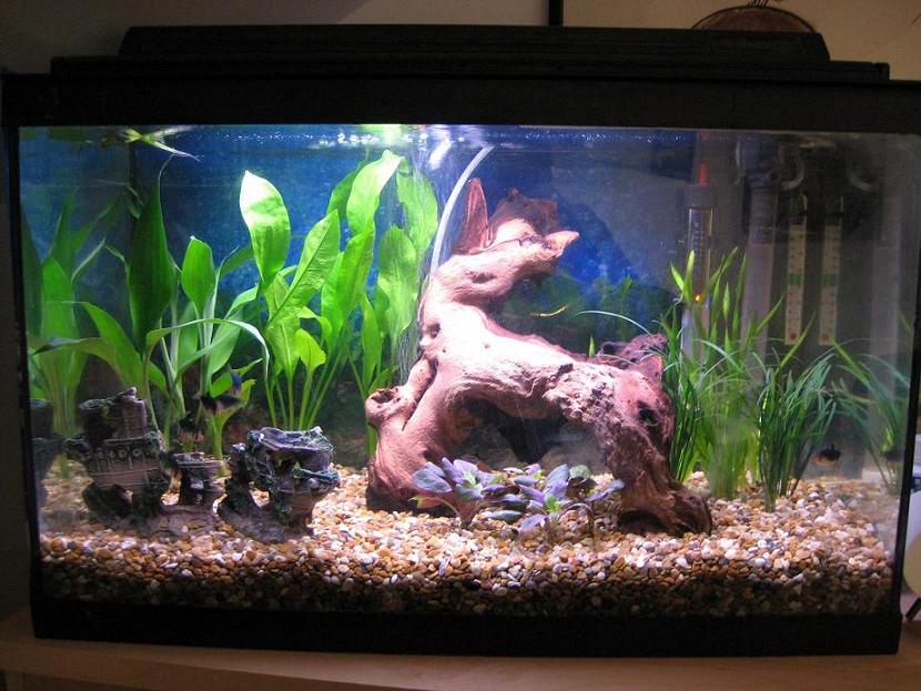 THanks for the comments ppl, I have a nice shoal of 6 green tiger barbs, Im doing a naval architecture degree and all my mates said i had to have a ship wreck in there......so im afraid it has to stay, I may 'cover' it with plants though......