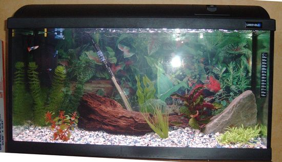 hi all this is pic of my first tank it needs more work but its coming along sound. My tank now houses 1 red tailed shark, 2 blue dwarf gouramis 8 neon tetras and an angel fish. any 1 got a red tailed shark in with community fish let us know what its like, plus what plants are best maintenance wise Oh and see if you can spot the only real plant in there at the moment ! youve all got some nice setups there ! so im gonna take a look at them and decide how mine will look in the end later peeps !