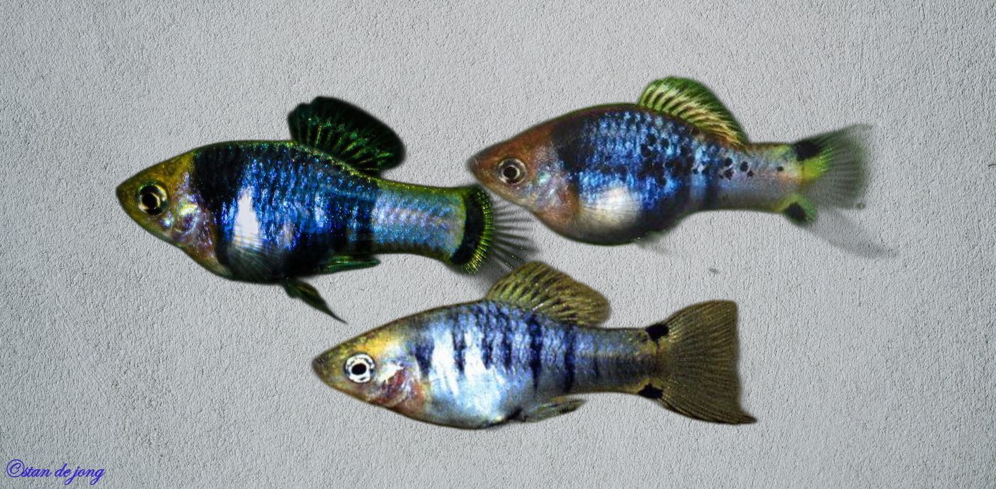 This shows a trio of Xiphophorus xiphidium. They're wild platies from Lake Catemaco in Mexico. With all the breaks, I've finished this in about a month time. I love to work with ecoline.