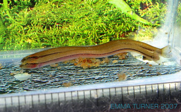 The ones I saw were thinner than a pencil, about 3 or 4 inches long and were kind of patchy in pattern and cream and brown in colour, I think. They were round at each end from what I could see. They stayed at the bottom of the tank. They were groups of them.