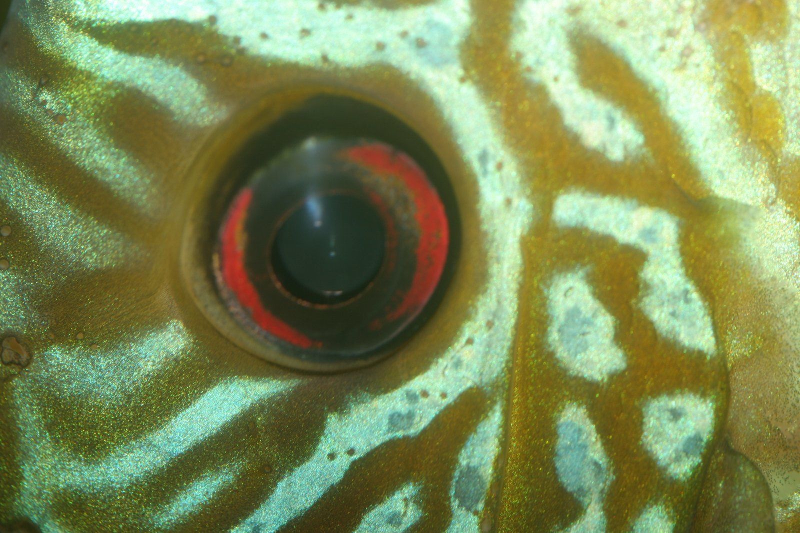Set shutter speed to 1/100 or faster (1/250) so fish aren't blury
