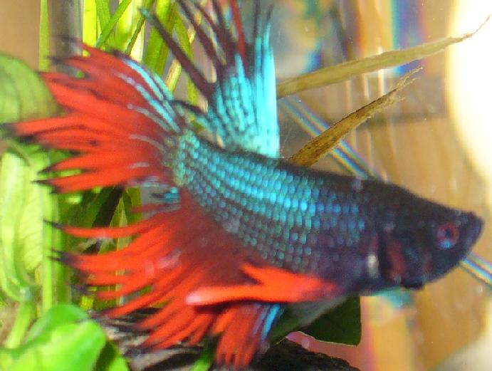 This is my new guy, a Crowntail who has yet to receive a name (more like, he hasn't quite given it to me). He's been here since Saturday, and I haven't panicked yet, so I'm sure he'll find the perfect name sooner or later.