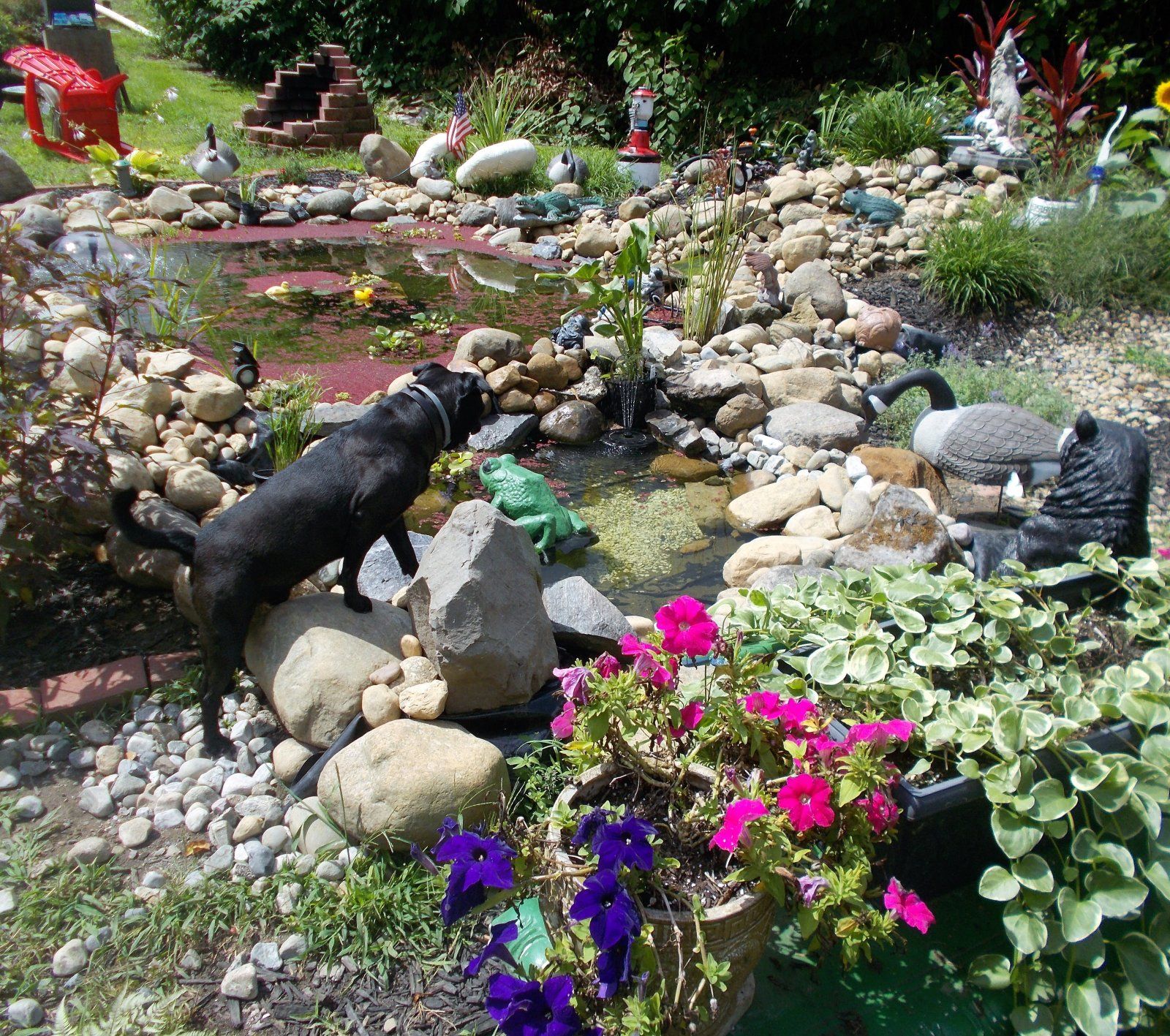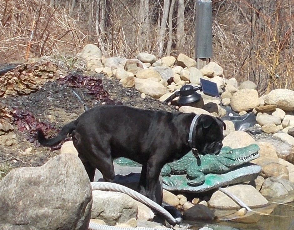 Buster at the pond protecting the fish from predator frogs, snakes and lizards. He is a Boston / Pug and 8 years old in the photo. View attachment 340495