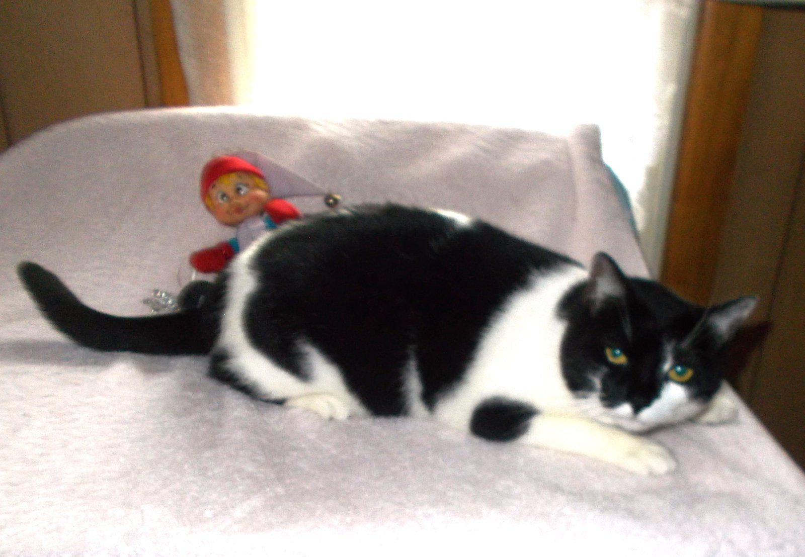 To be fair .. This is Patches the cat. Just turned three but is about 1 1/2 in this photo. She is another one that flees when she sees the camera. She is not as grouchy as she looks in the photo. Patches is bonded to herself although she will lay on my lap nightly at about 7PM for a belly rub.View attachment 340498