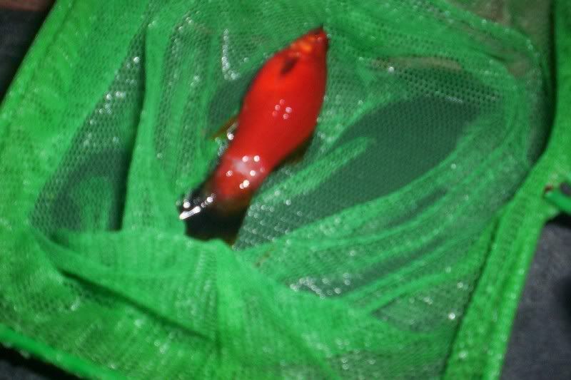 I have a female red wag swordtail and when I bought her she had a white streak which I didnt see, I have been treating with aquarium salt and it is getting worse. It looks like somthing is eating its flesh, because it is turning pink in that area.I have some pics and the bright spot is the sore( not the best pics, but I cant do anything about that).