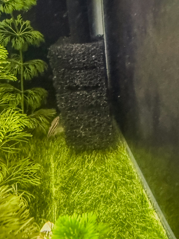 ). I know some would say I need more media but I have always had minimilist tendencies, and that frogbit covers 100% of the surface.If I add a normal sponge filter to the inlet the flow is reduced to a trickle. This would have worked as my original plan was to use this as a breeding / fry tank. Now its a QT and home to 13 adult nano fish that makes the flow inadequate. Not a problem the flow is fine without an inlet filter. Then I decided I may try this as a species tank. I know technically its probably too small but as a QT its working well and the fish behaviour is good, as is the water quality. But then what happens if / when they breed. And they will with nothing else in the tank, and in time I may add shrimp. So I needed an inlet filter without reducing the flow.