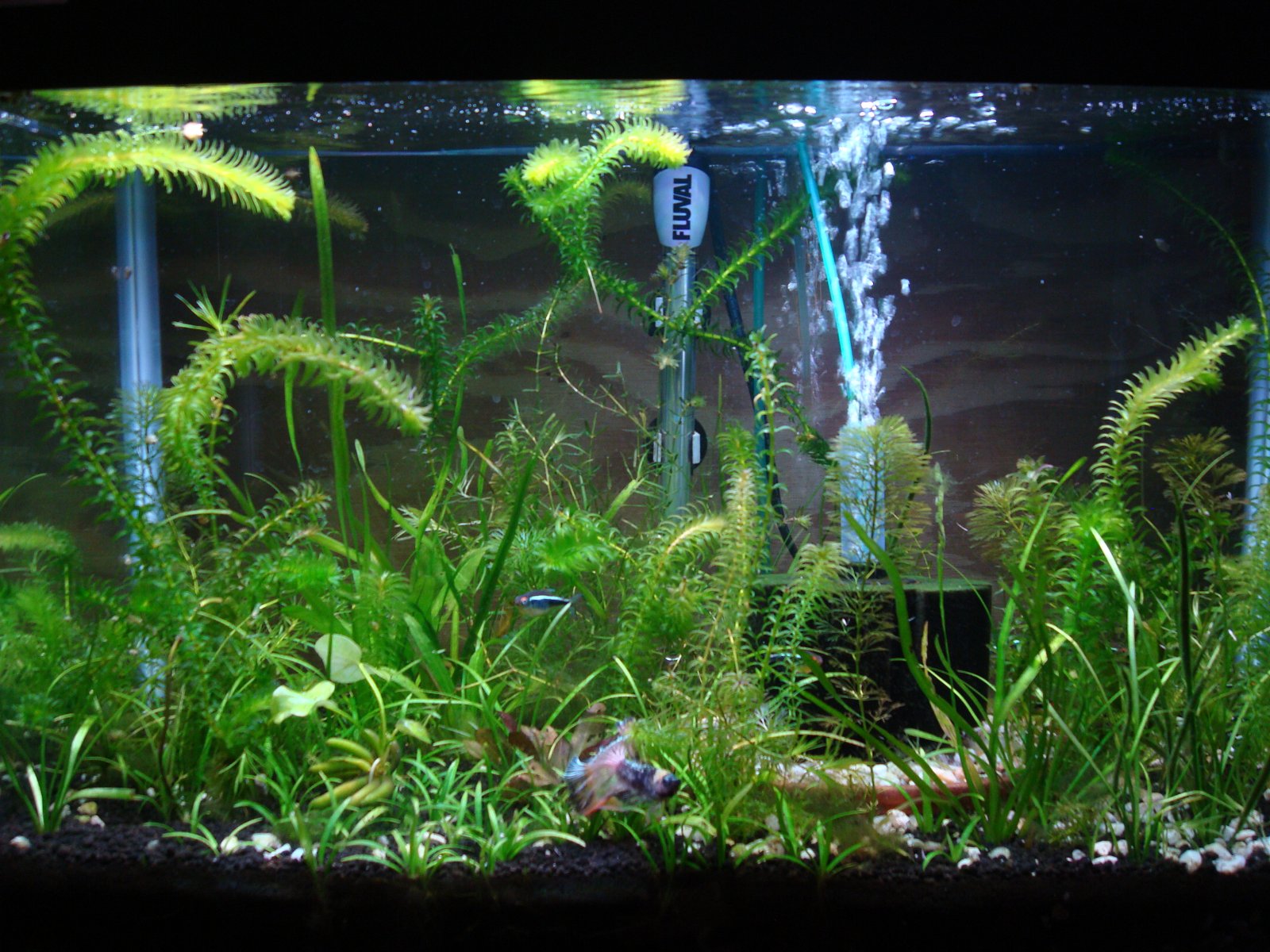 light (for the camera) usually indicates a water change, hid! You can see Flipper, the betta, in