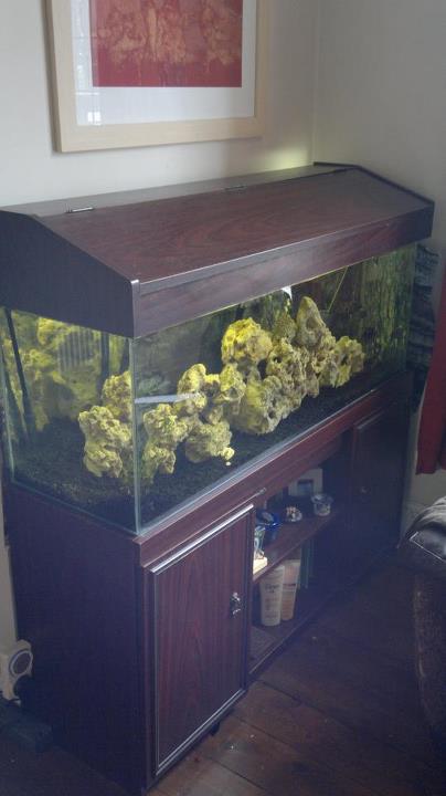4 FOOT, 230 LITRE Clear seal mahogany tank and cabinet, internal filter, light, airpump, heater, subsrate-black or beige you can choose or have both.