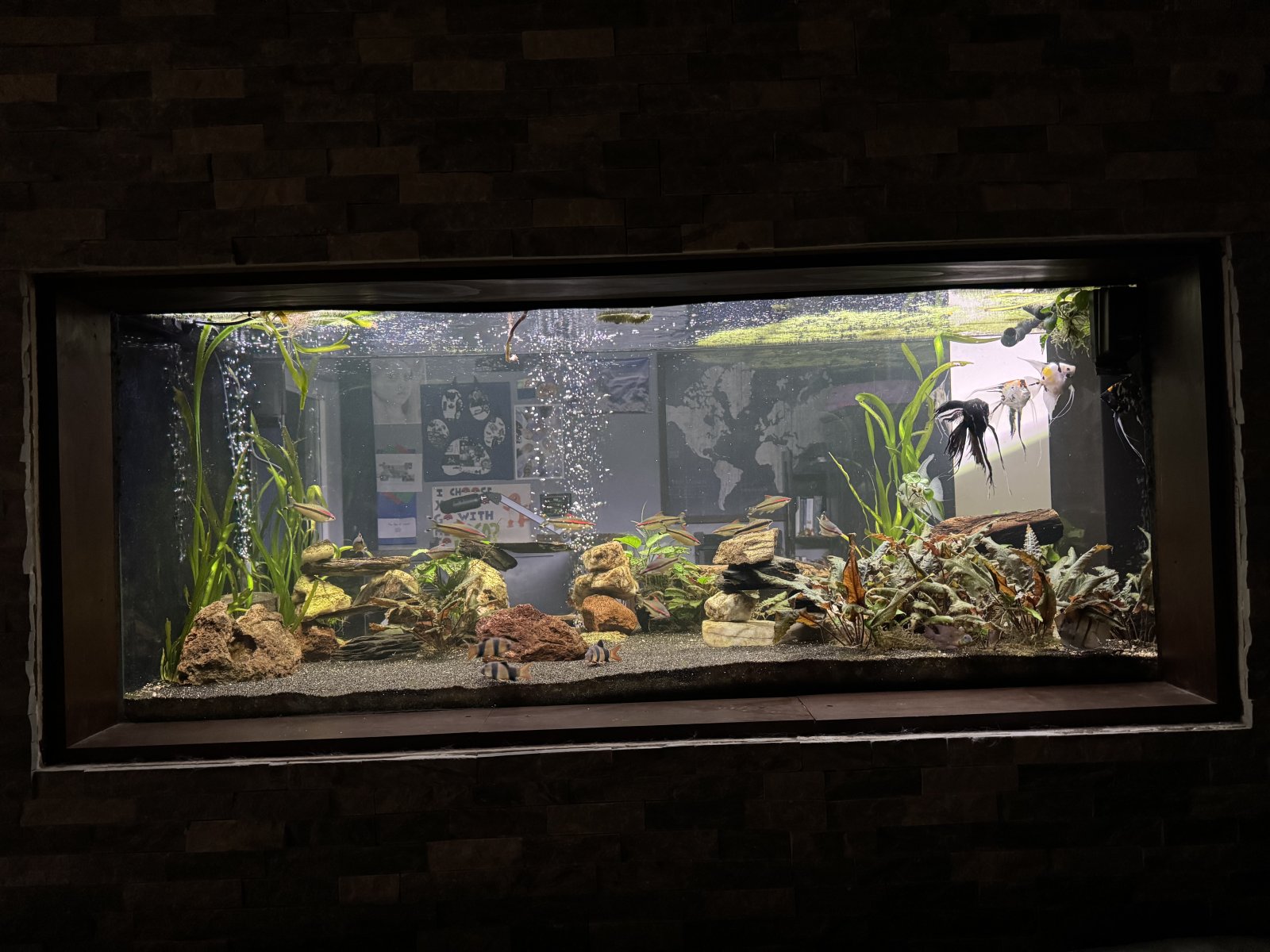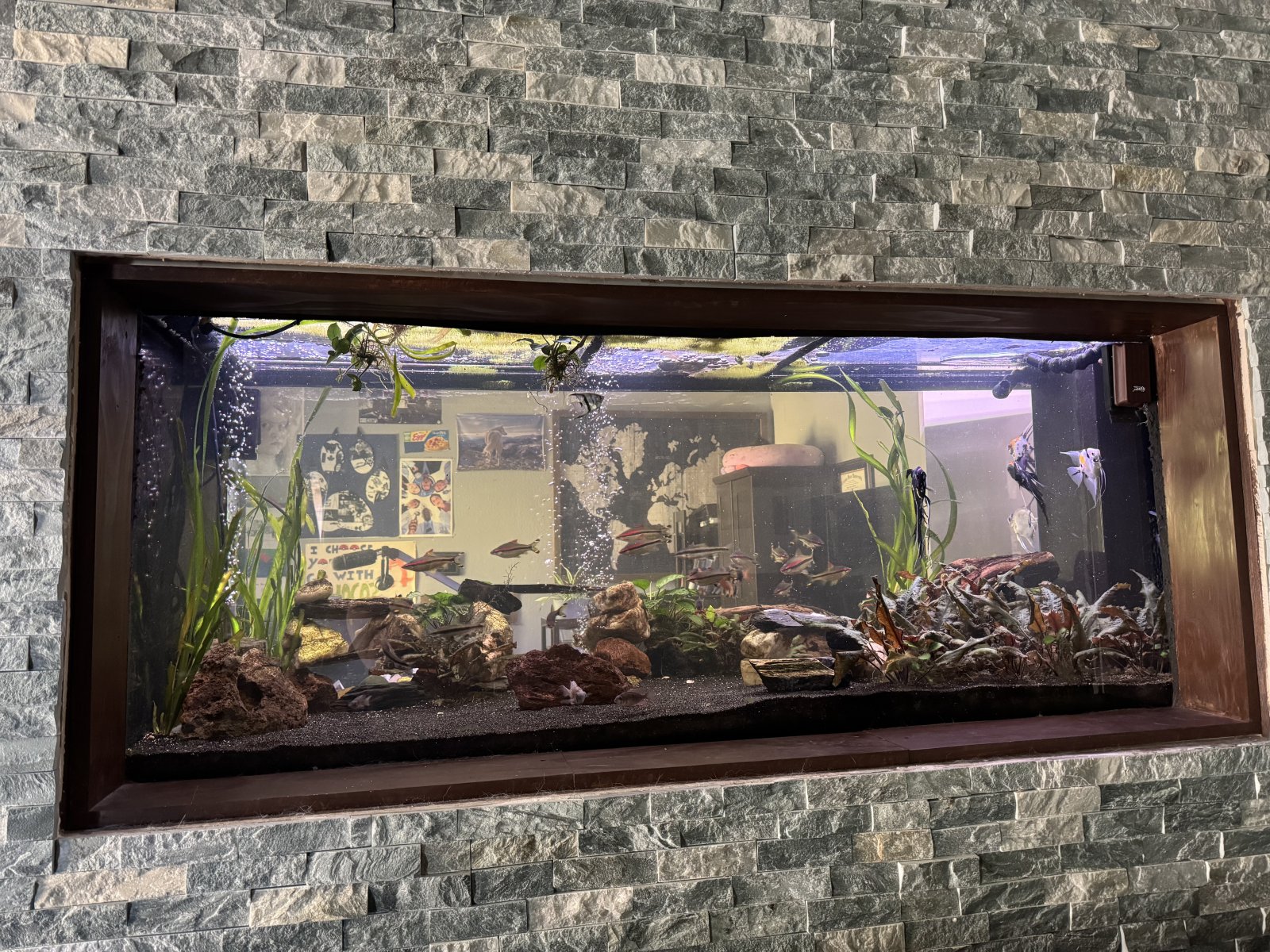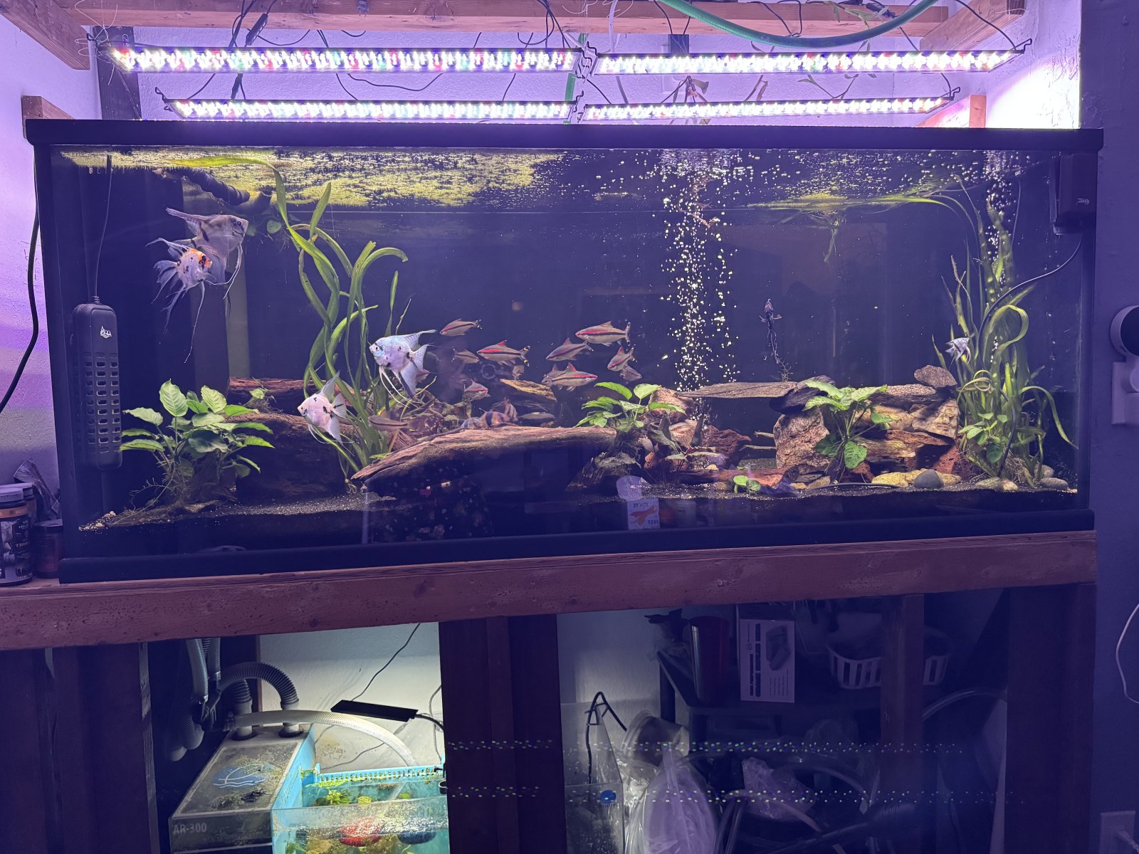 In my 250 gallon, I have a black ghost knifefish named Danny Phantom (he is my prime and joy and currently 12” long), a Senegal bichir (might add another type of bichir), a big school of Roseline sharks/denision barbs, an albino pleco (who someone pawns off to me as a “bristlenose” but has grown to 6.5” so far and has 0 bristles…. Clown loaches, Bolivian rams, angelfish, Siamese Algae Eaters, and an opaline gourami who was too much of a bully for the 36 gallon.