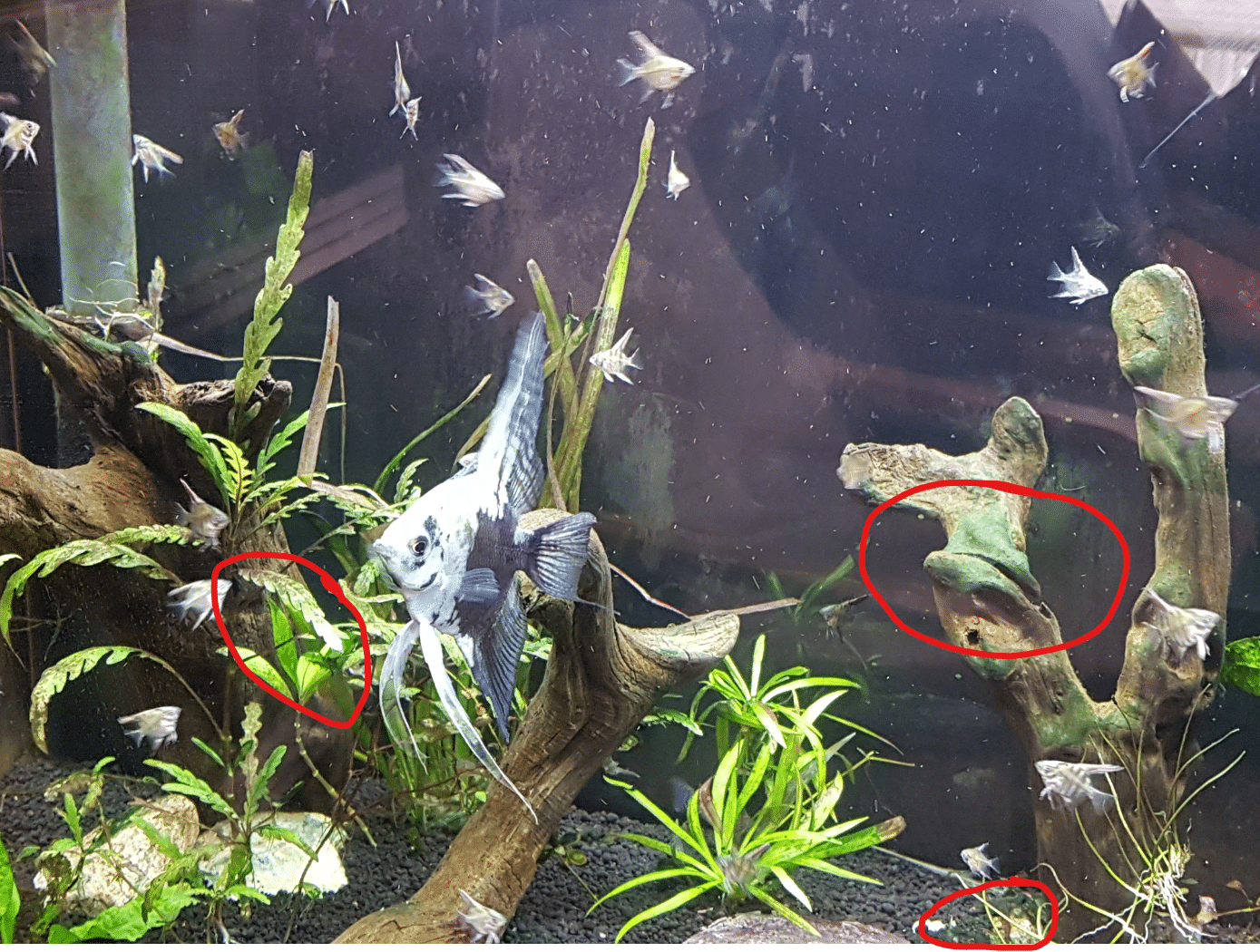 Pretty sure that the "algae" in my tank is cyanobacteria, it fits all the criteria, develops fast, forms sheets, and according to my wife it smells (for some reason I cannot smell it). The photo is from the tank that is the worst. It is the tank I am raising my angel fry in so I am only treating by removing the films every 1 or 2 days. The plants are doing poorly because of the blackout treatment just before the angels laid the eggs, the plants were also not doing well because I let the floater population take over blocking some light.