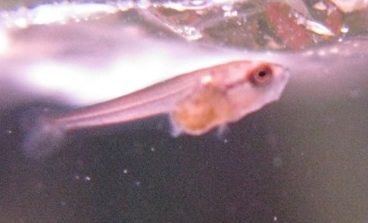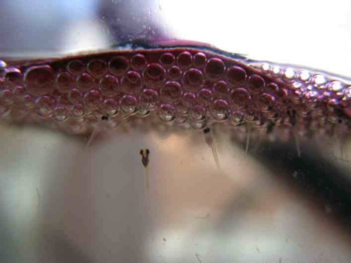 Week 1 the fry are tiny and no real eyes or tails can be seen: